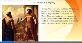 Σε αυτό το μάθημα δεν συμπληρώσαμε το Λεξικό της Ιστορίας αλλά σημπληρώσαμε τον πρώτο άθλο του Ηρακλή στον πίνακα με όλους τους άθλους που του ετοιμάζουμε.